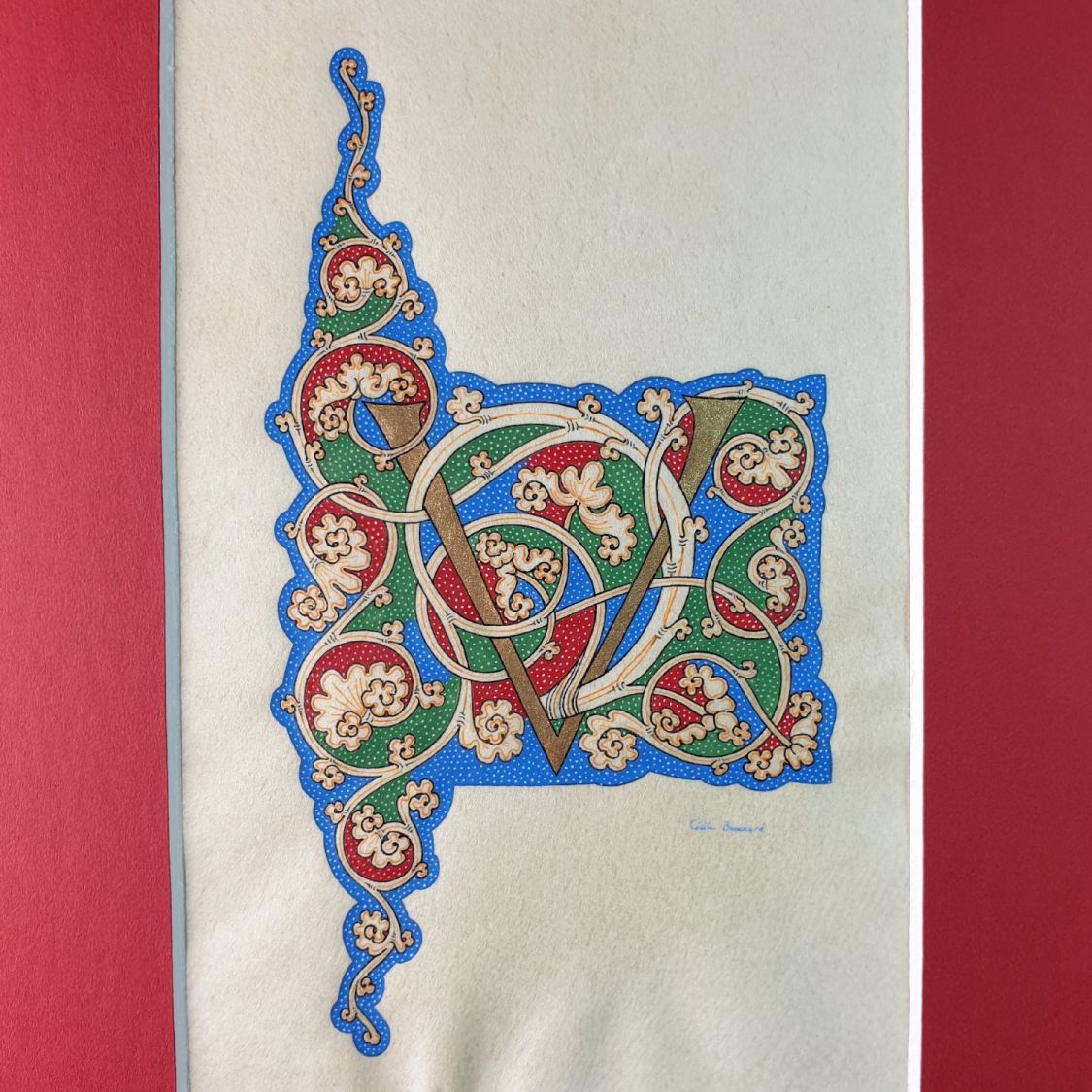Cette initiale est l'interprétation d'une lettrine issue d'un manuscrit italien de la Renaissance (fin du XVe siècle).